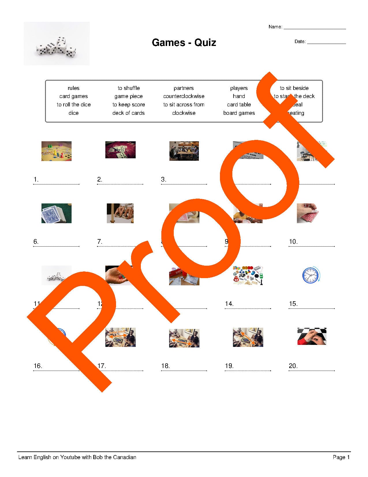 This is a study pack for my Youtube video: Free English Lesson! Topic: Games! Note: All files will be delivered digitally.