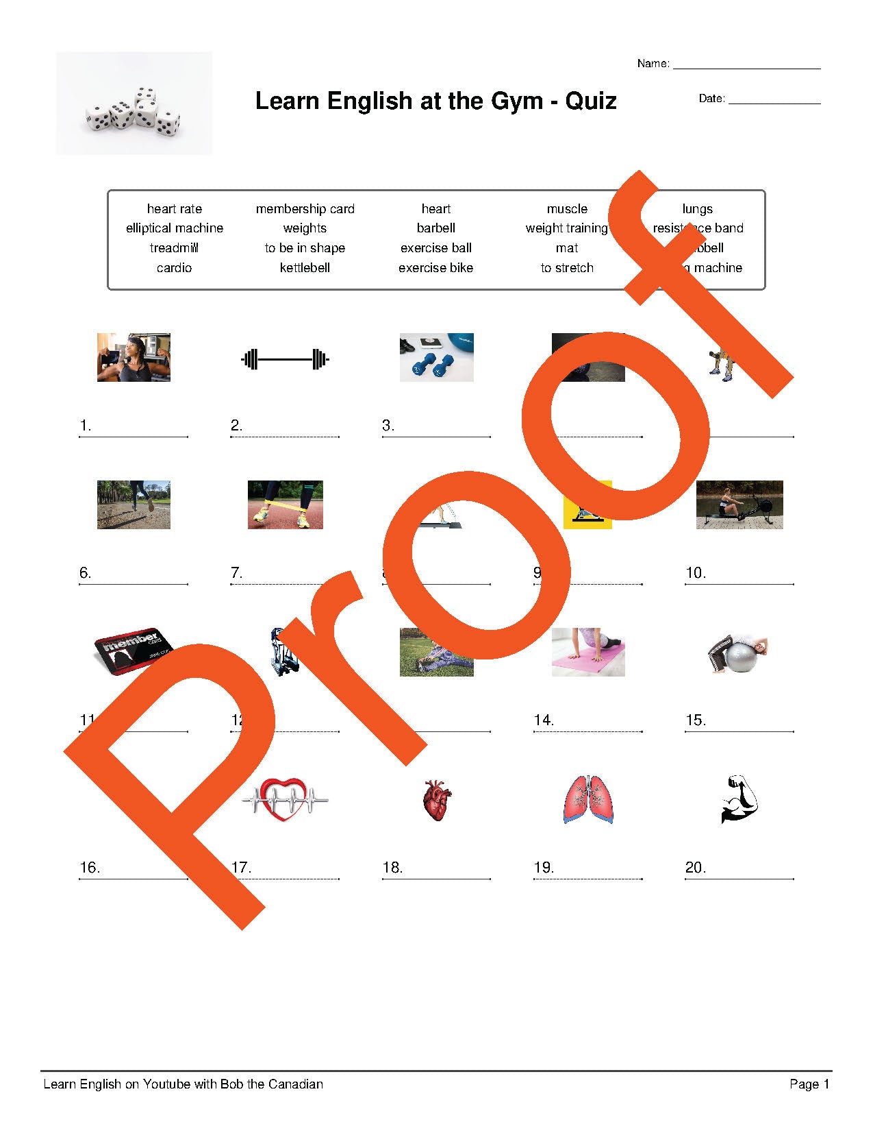 This is a study pack for my Youtube video: Let's Learn English at the Gym! Note: All files will be delivered digitally.