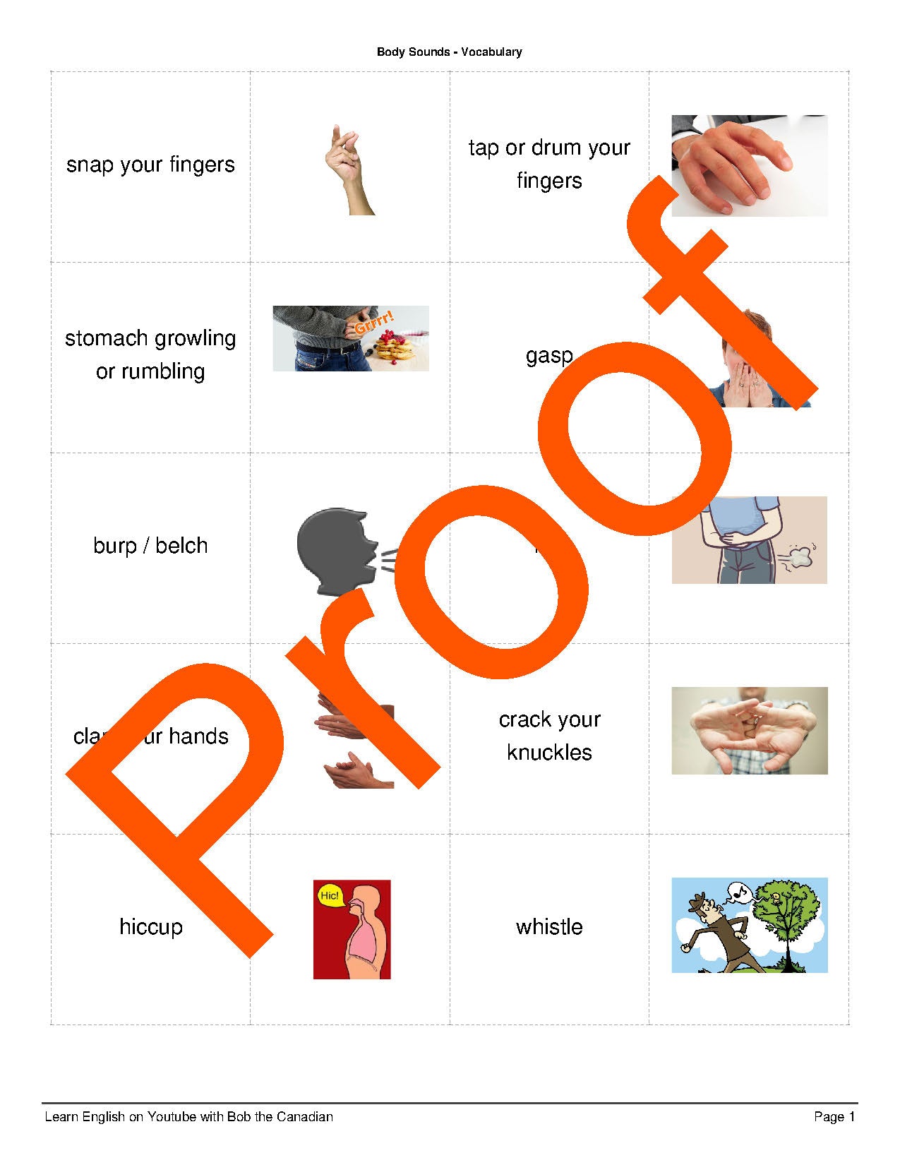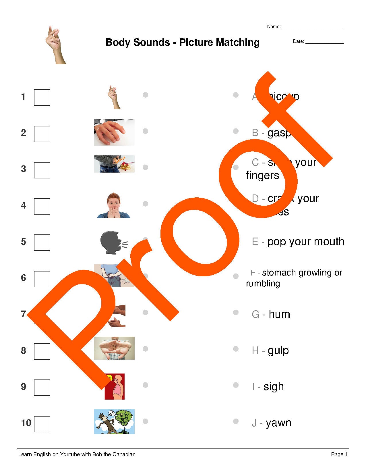 This is a study pack for my Youtube video: Free English Class! Topic: Sounds Our Bodies Make! Note: All files will be delivered digitally.